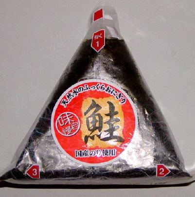 Mit Yakinori umwickelter Snack aus gekochtem Reis, gefüllt mit gegrilltem Lachs